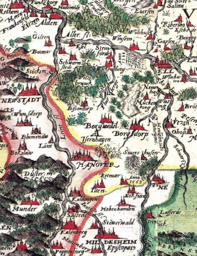 Zu sehen ist die älteste Karte, auf der die Aue verzeichnet ist.