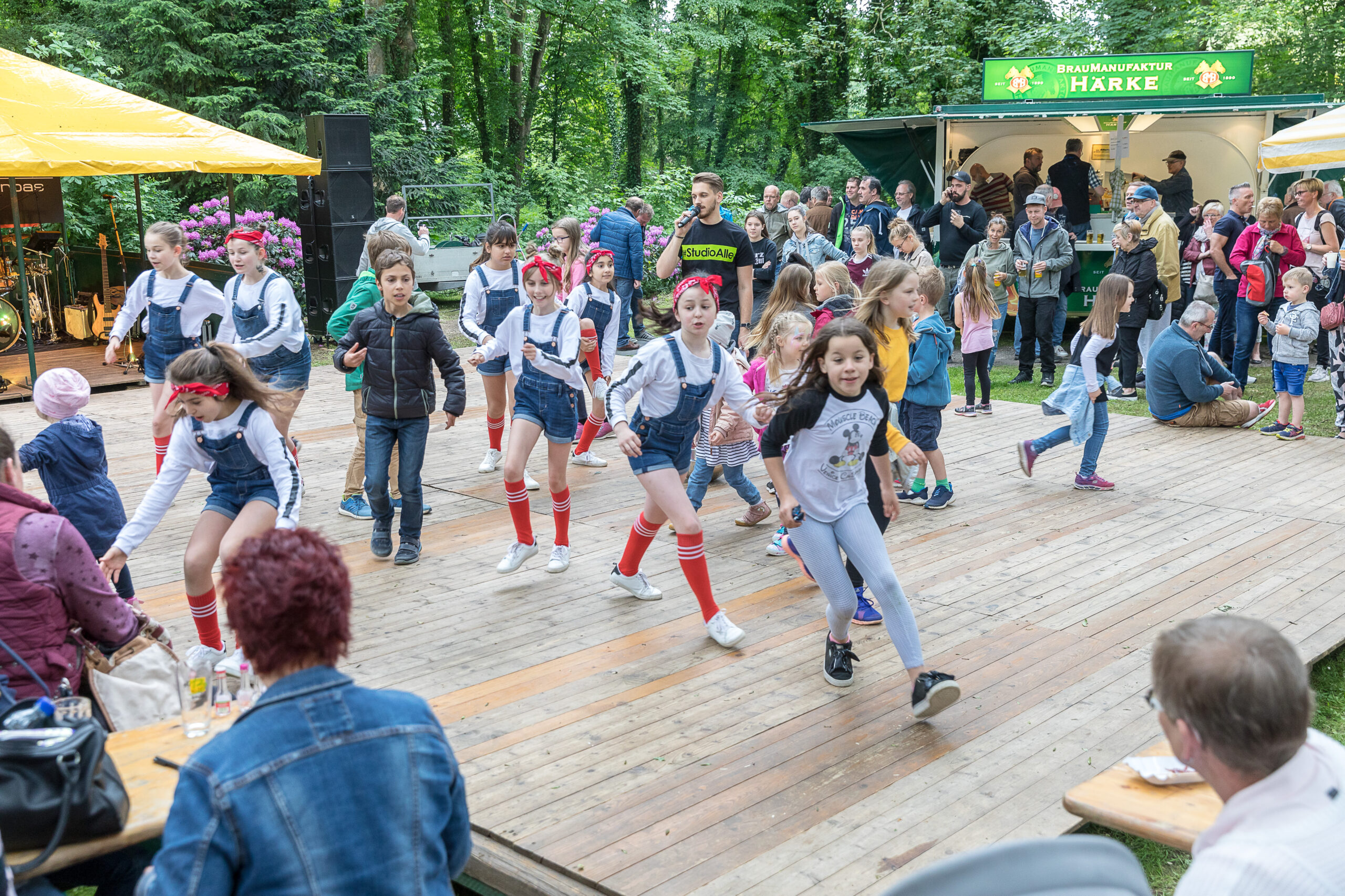 Auf der Bühne spielt die Tanz- und Showband „FAIR PLAY“ aus Hänigsen. Sie besteht aus dem Bandleader Timo Nerbas (Keyboard, Akkordeon), Mario Nerbas (Schlagzeug), Christian Drcec (Gitarre), Christian Kirstein (Bass) & Sängerin Christina. Das vielseitige Repertoire aus den Hits der 1970er, 1980er und 1990er Jahre bis hin zu aktuellen Songs aus den Charts sowie Schlagern, Ohrwürmern und Modetänzen lässt keine Wünsche offen. Die Musiker sorgen ab 11.00 Uhr für beste Partystimmung. Auf dem Areal der Tanzfläche im Umfeld des Schwanenteichs erwartet die Gäste ein Angebot an Imbiss- und Getränkemöglichkeiten. Das Studio B5 organisiert ein kurzweiliges Mitmachprogramm für Kinder. Zudem gibt es die Gelegenheit zum Bungee-Trampolinspringen, zum Austoben auf einer Riesenhüpfburg und zum Auftragen von Glitzer-Tattoos.