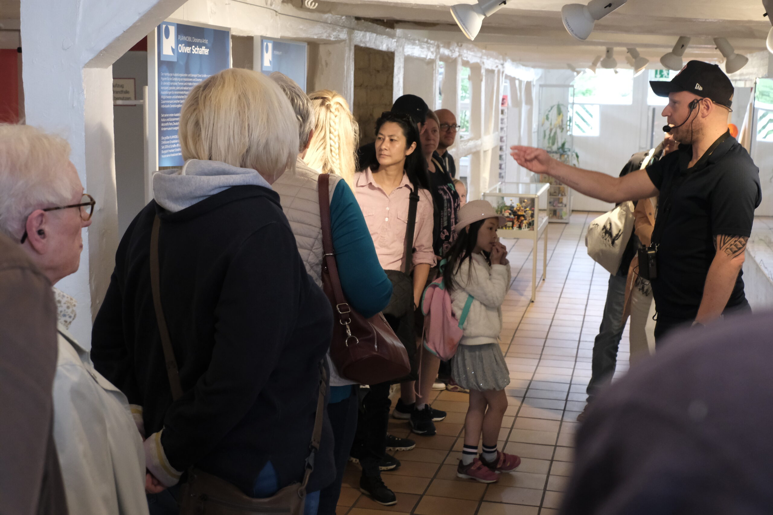 In seiner kurzweiligen Einführung nahm Oliver Schaffer die Besucherinnen und Besucher mit auf eine Reise durch seine fantasievoll arrangierten PLAYMOBIL-Dioramen. Mit großer Leidenschaft erklärte er die Entstehung einzelner Szenen, erzählte Anekdoten aus seiner langjährigen Arbeit als Sammler und Künstler und vermittelte den kulturellen Wert, den das berühmte Spielzeug über Generationen hinweg erlangt hat.