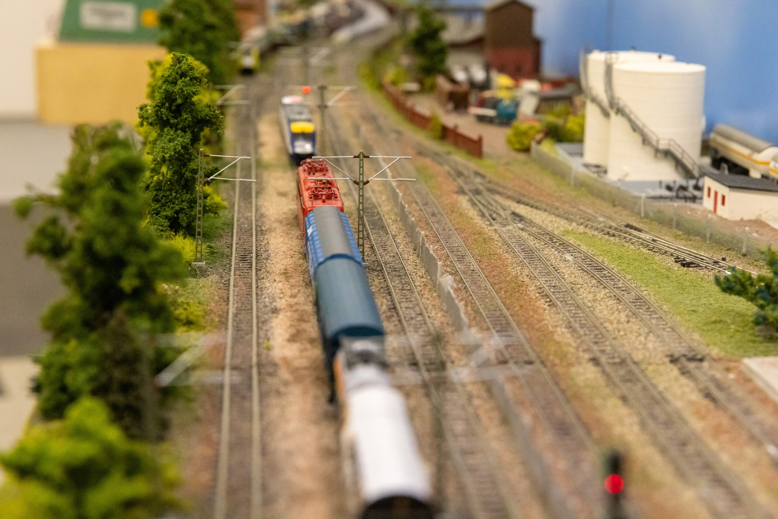 Die BSW-Freizeitgruppe MEC Hannover hat für die Ausstellung „Modelleisenbahnen im Wandel der Zeit“ eine vielfältige Auswahl an Exponaten zusammengestellt.  Eine besondere Attraktion ist eine große Spur-N-Modellbahnanlage,  auf der zahlreiche Züge analog wie auch digital verkehren.  Ein Kleinstadtbahnhof ist der Mittelpunkt der Anlage. Es halten Regionalzüge und S-Bahnen. Aber auch der Fernverkehr ist hier zu sehen. Im angeschlossenen Güterbahnhof gibt es zahlreiche Anschließer, die für reichlich Güterverkehr sorgen. Über ein Industriegleis sind weitere Kunden angeschlossen. Auf vielen weiteren Modulen kann man kleine Szenen des Alltags entdecken.