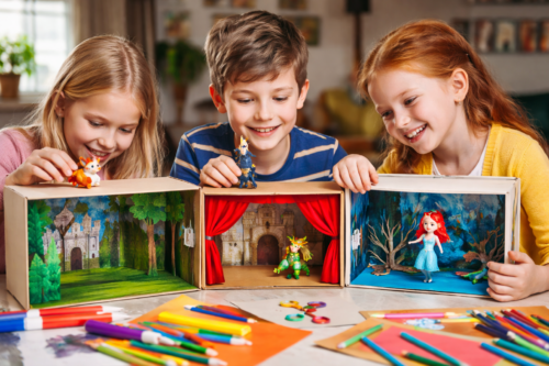 Die Workshops starten am 25. Januar mit einem Schuhkartontheater. Aus einem Schuhkarton oder einem anderen geeigneten Karton entsteht eine kleine Theaterbühne, auf der eigene Geschichten zum Leben erweckt werden. Als Spielvorlagen eignen sich selbst erfundene Erzählungen ebenso wie Märchen, Fabeln oder bekannte Filme. Wer noch keine konkrete Idee hat, kann diese beim gemeinsamen Bauen und Gestalten entwickeln.