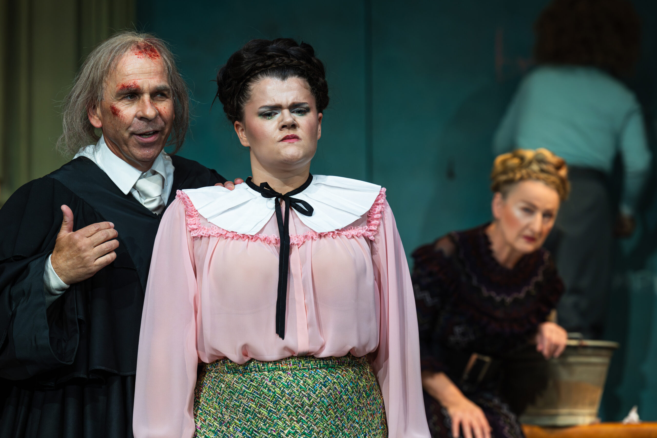 Worum geht es im „Zerbrochenen Krug“: Wir befinden uns vor Gericht, aber um die Wahr- heit geht es hier nicht im Geringsten! Das Gegenteil ist der Fall: Nie vertuschten die Akteure Wahrheit auf der Bühne grandioser, voller absurder Argumentationskapriolen, irrwitzig komisch, sprachlich virtuos – und menschlich abgründig. Denn Dorfrichter Adam muss über eine Tat richten, die er selbst begangen hat. Doch von vorne: Lädiert erscheint der Richter zur Gerichtsverhandlung, die Nacht muss wild gewesen sein … Es ist ein Krug zerbrochen in jener Nacht, beklagt von Marthe Rull. Der Krug befand sich im Zimmer ihrer Tochter Eve, ein ungestümer Eindringling hat ihn zerstört. Unter Verdacht steht Eves Verlobter Ruprecht. Oder war es doch dessen Nebenbuhler Lebrecht? Oder der Teufel höchstpersönlich? Eve ist die einzige, die die Wahrheit kennt, doch sie schweigt. Und das hat einen Grund …